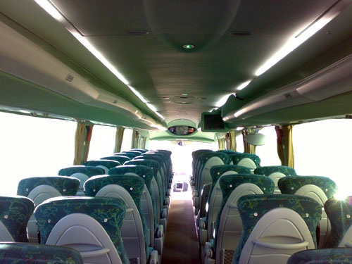 Os nossos autocarros possuem: ar condicionado individual, rádio, microfone, telefone móvel, minbar e vidros duplos. São ideais para excursões, casamentos, tours, congressos, e todo o tipo de viagens de grupos.